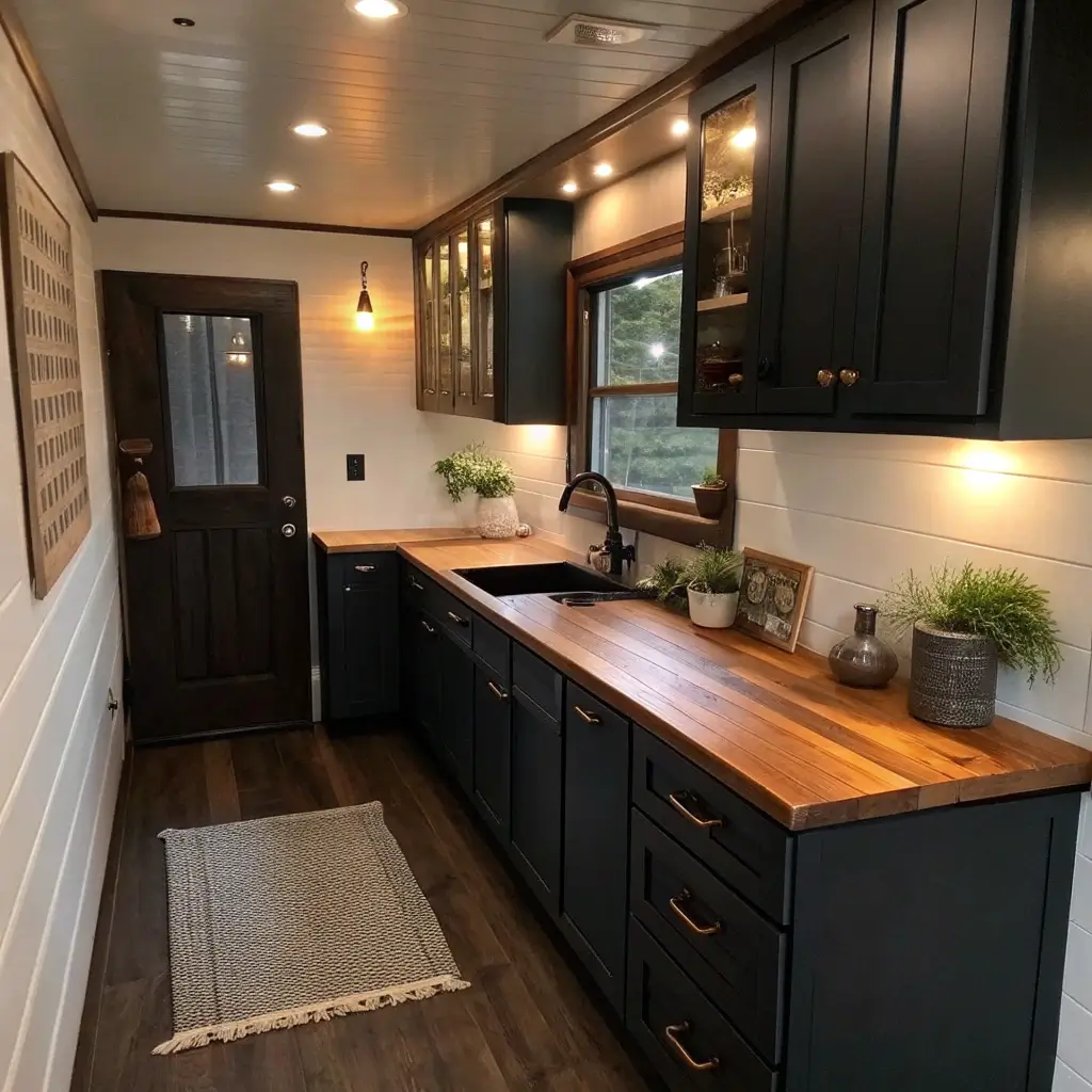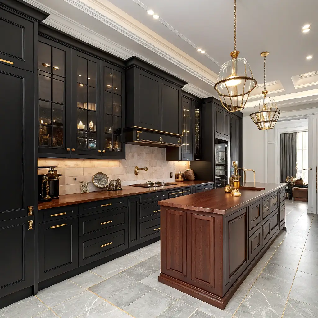 The beauty of this approach lies in its flexibility. Keep your perimeter cabinets light or white, and that black island becomes a stunning focal point. Or go full drama with black cabinets everywhere and let the wooden island top provide relief from all that intensity.