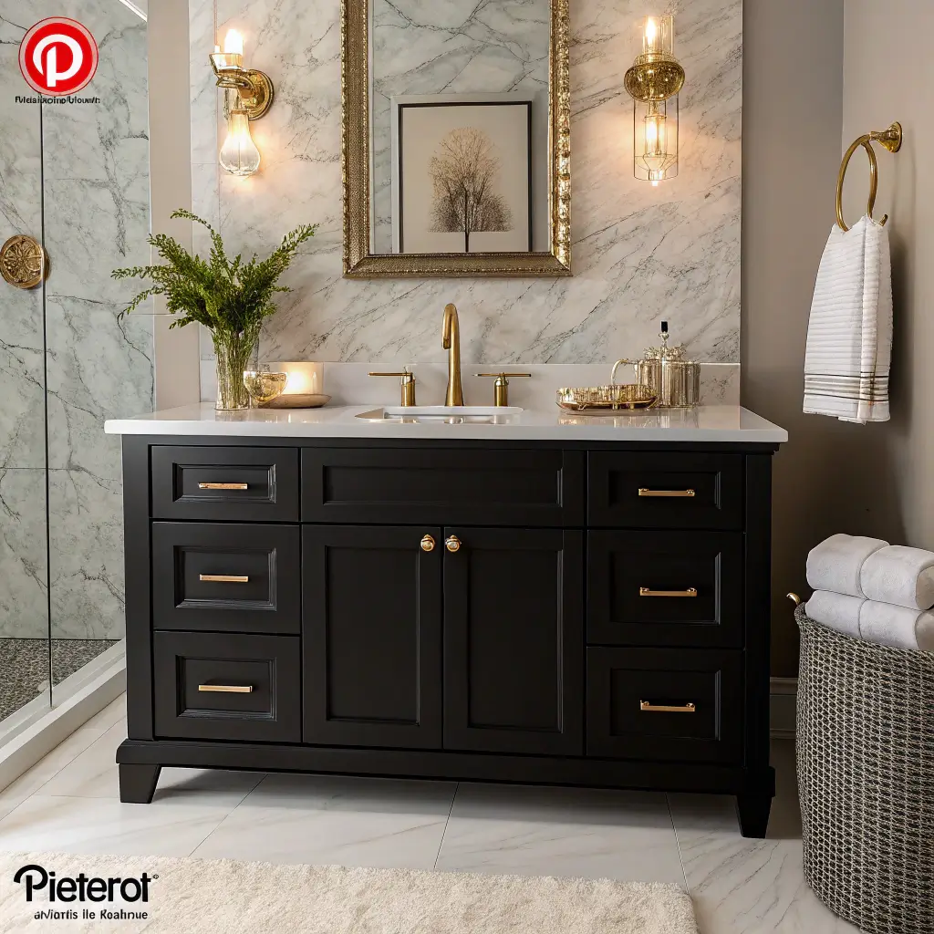 This combination makes me weak in the knees every single time. A sleek black vanity paired with gold hardware creates this perfect balance between edgy and elegant. You’re basically telling everyone who enters your bathroom that you have impeccable taste.