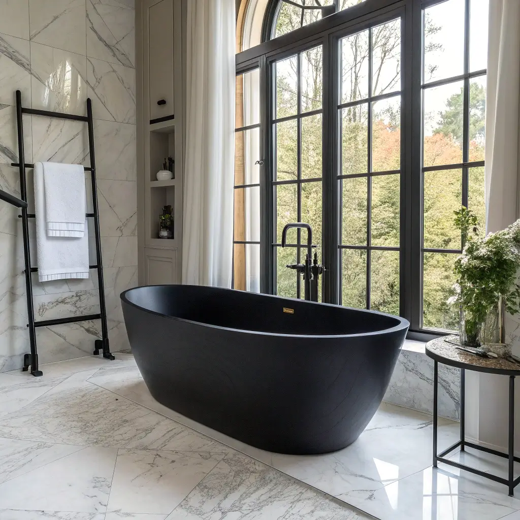 My dream tub is this matte black clawfoot number I saw at a design showroom. The price tag made me cry a little, but the impact? Absolutely worth saving up for. Black tubs work especially well in bathrooms with lots of natural light, where the dark surface creates dramatic shadows throughout the day.