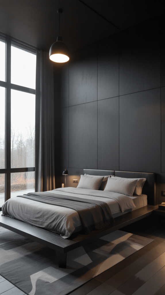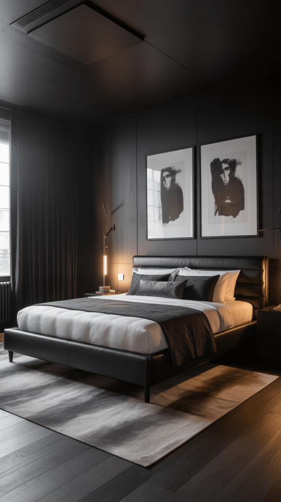 Masculine doesn’t mean boring, and black bedrooms prove this perfectly. Clean lines, quality materials, and purposeful design create spaces that feel sophisticated rather than stereotypical.