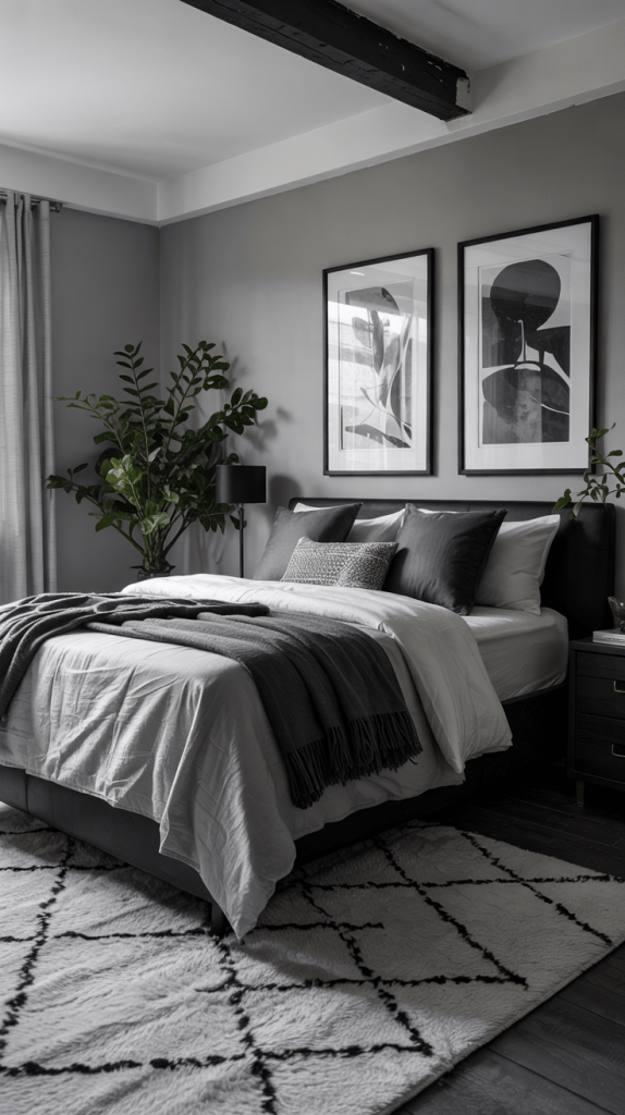 Layer different textures on your bed. Start with high-thread-count sheets in black or deep grey. Add a velvet duvet, silk pillowcases, and a chunky knit throw. The variety invites touch while maintaining visual sophistication.