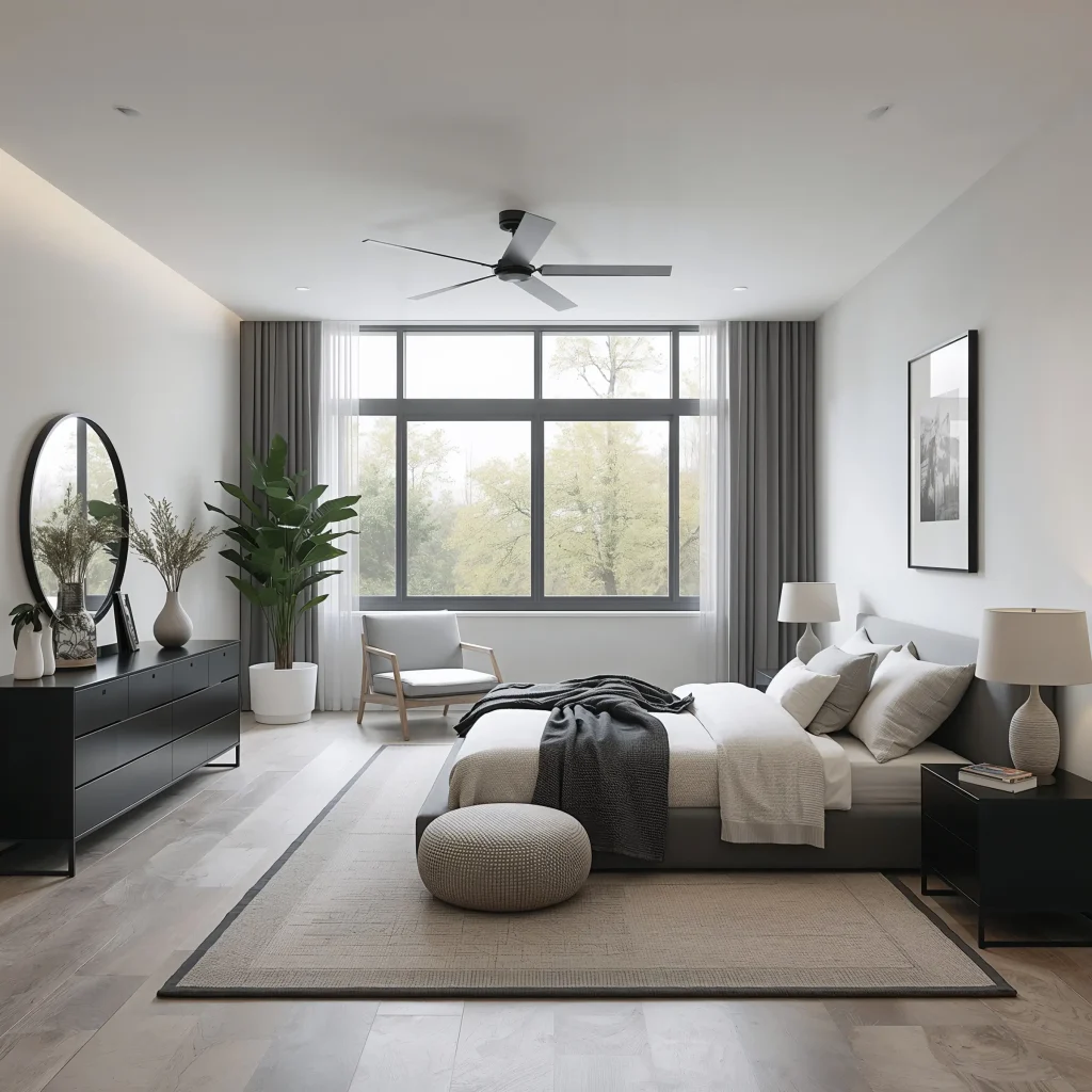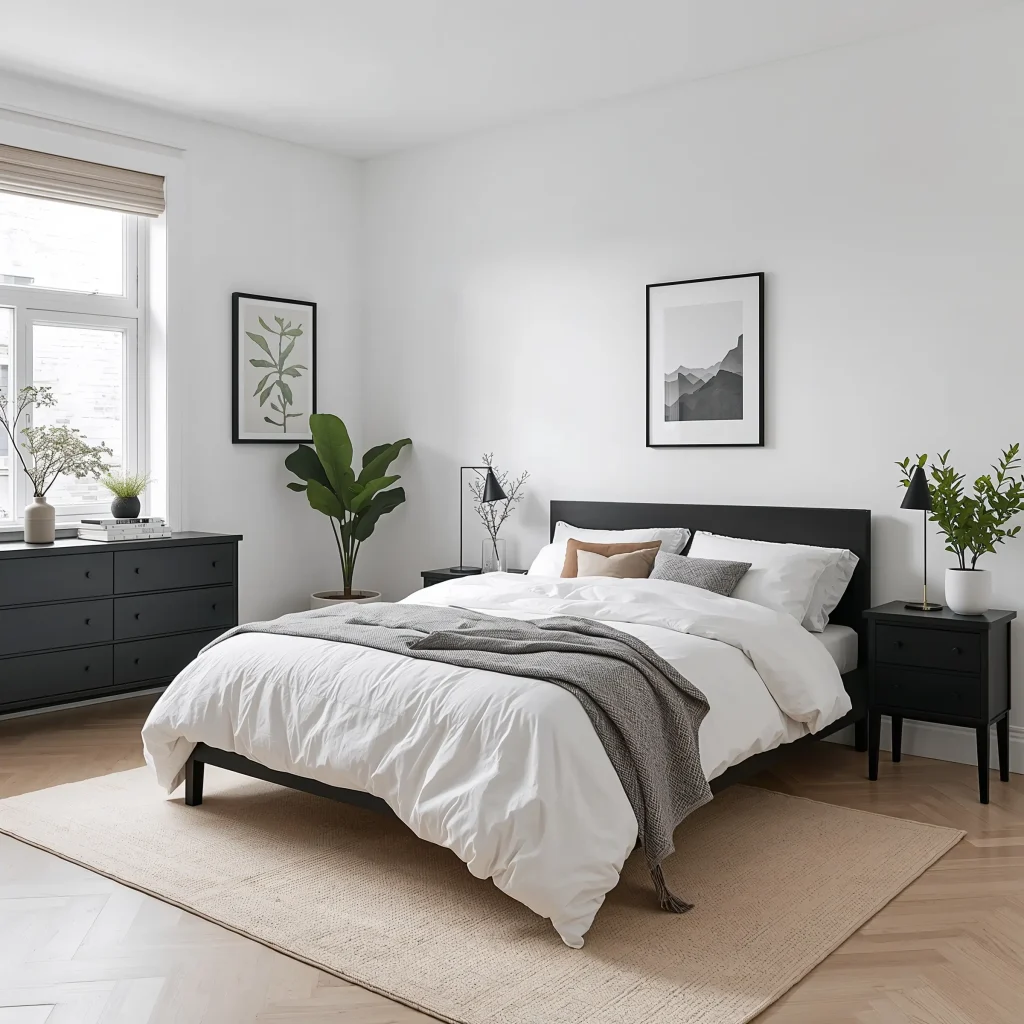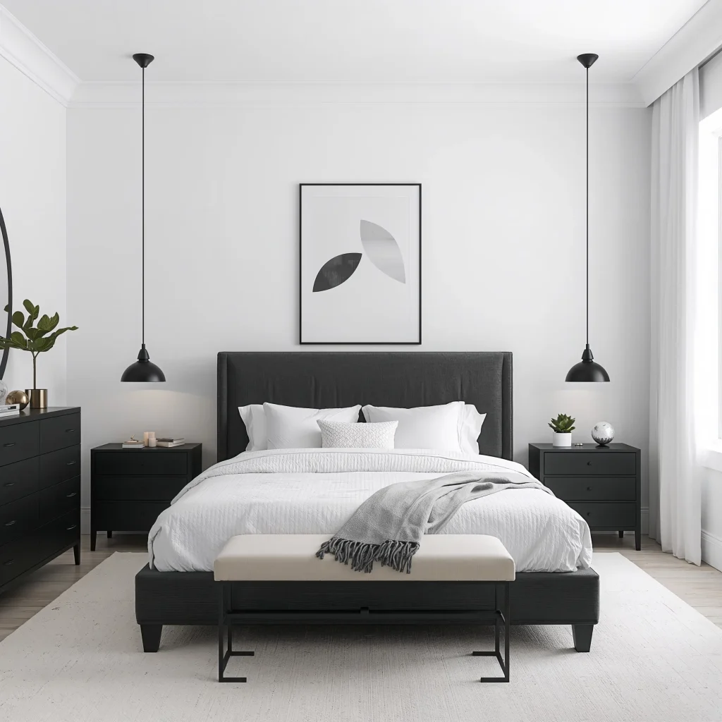 2. The Classic: Black and White Minimalist Bedroom