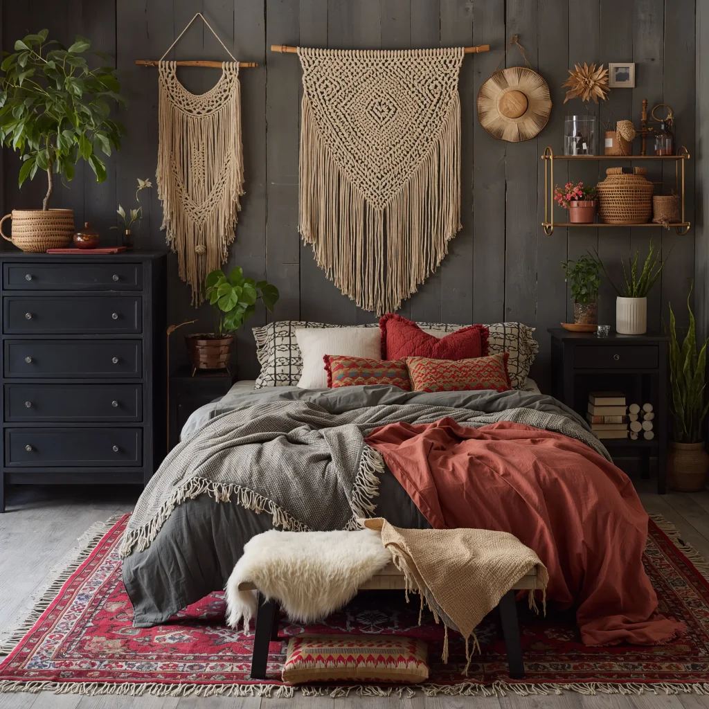 13. Free-Spirited Darkness: The Boho Chic Black Bedroom