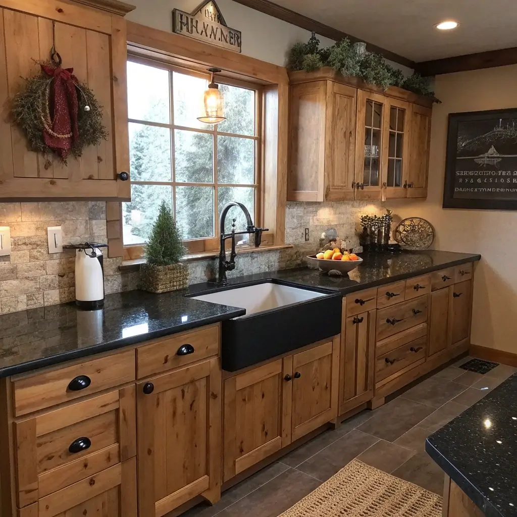 Who says rustic can’t be refined? Black granite in a rustic kitchen creates this unexpected elegance that catches everyone off guard. It’s like wearing designer boots with your favorite worn jeans – unexpectedly perfect.
