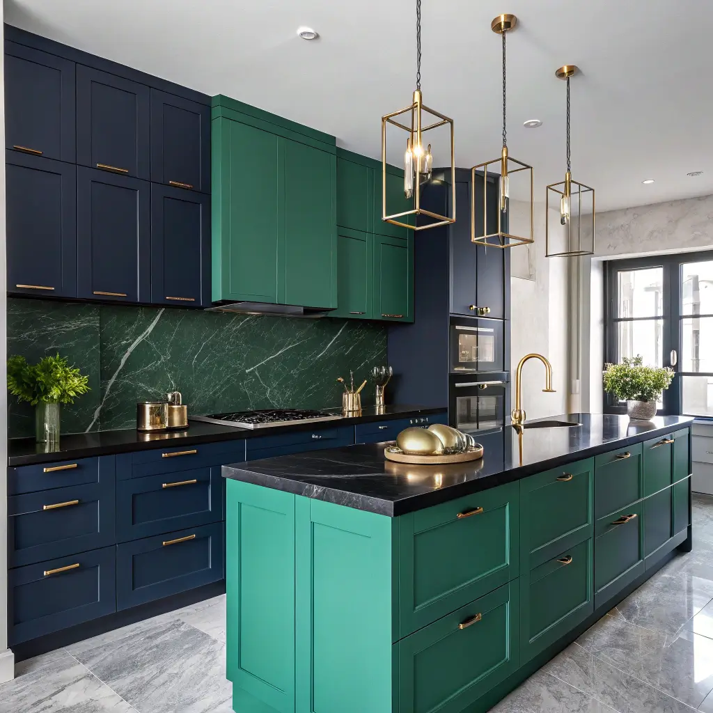 I painted my lower cabinets deep teal last year (keeping the uppers white), and the way they play off my black granite counters still makes me ridiculously happy. Bold doesn’t mean chaotic – the black granite actually grounds bright colors, preventing them from overwhelming the space.