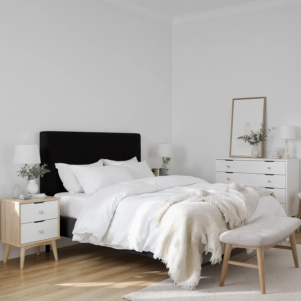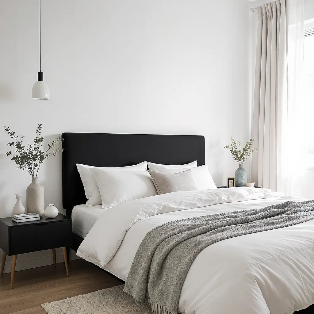 - Texture Over Contrast: Since you’re not relying on color contrast, texture is everything. Pair your black headboard (velvet or dark wood are great choices) with linen bedding, a chunky knit throw, and a plush rug.