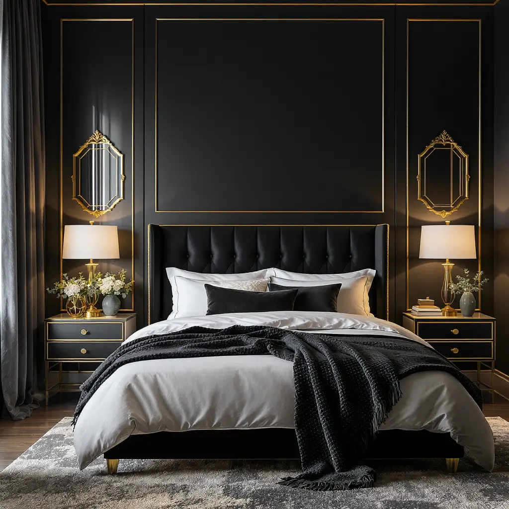 - Headboard Focus: A simple black headboard, perhaps with a subtle gold or brass trim, is a great starting point. A plain black headboard also works perfectly, allowing the accents to shine.