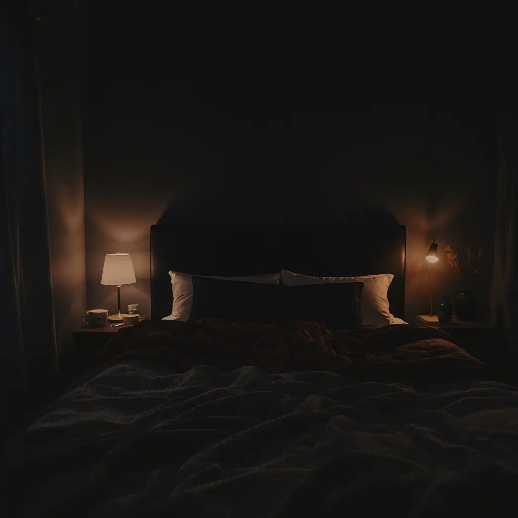 - Layered Lighting: Ambient lighting is crucial to prevent the room from feeling like a black hole. Use multiple light sources: dimmable bedside lamps, a floor lamp in a corner, and maybe some picture lights. Warm, soft-white bulbs are a must.