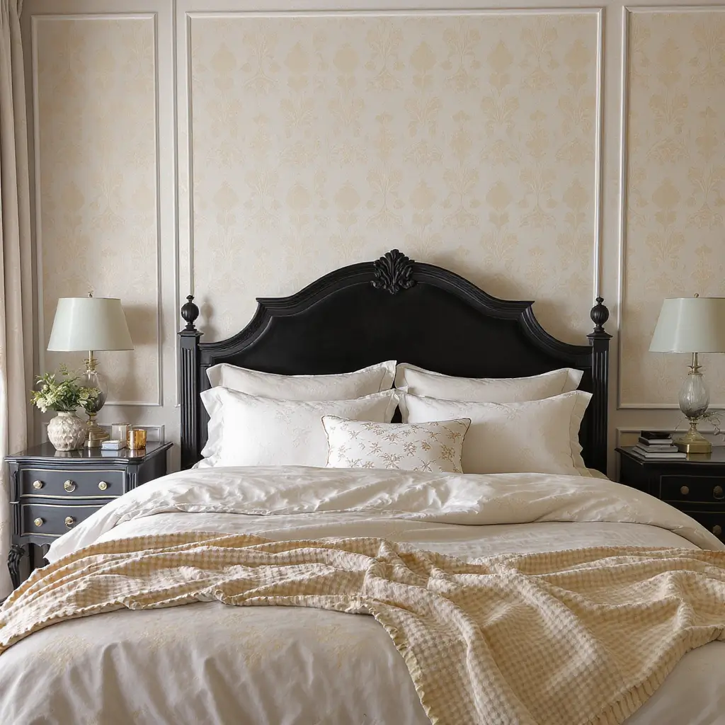 - The Headboard: A classic, traditionally shaped black headboard (like a wingback or one with a camelback curve) works wonderfully here, adding to the timeless feel. A simple black upholstered one is also a great choice.