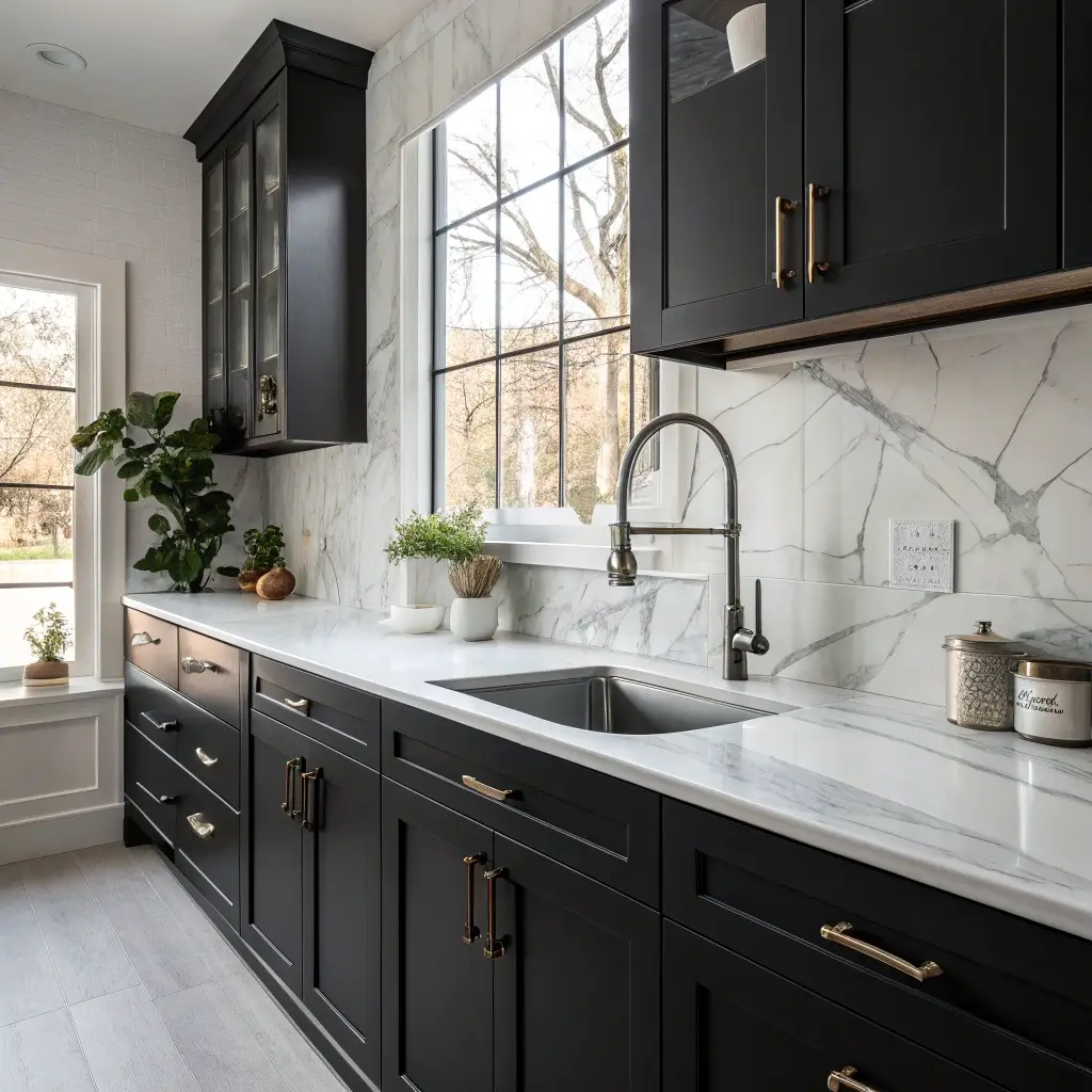 This classic combo never gets old, and there’s a good reason why. White marble against black cabinets creates this timeless elegance that’ll still look fresh in 20 years. Trust me, I’ve seen kitchen trends come and go, but this pairing has serious staying power.