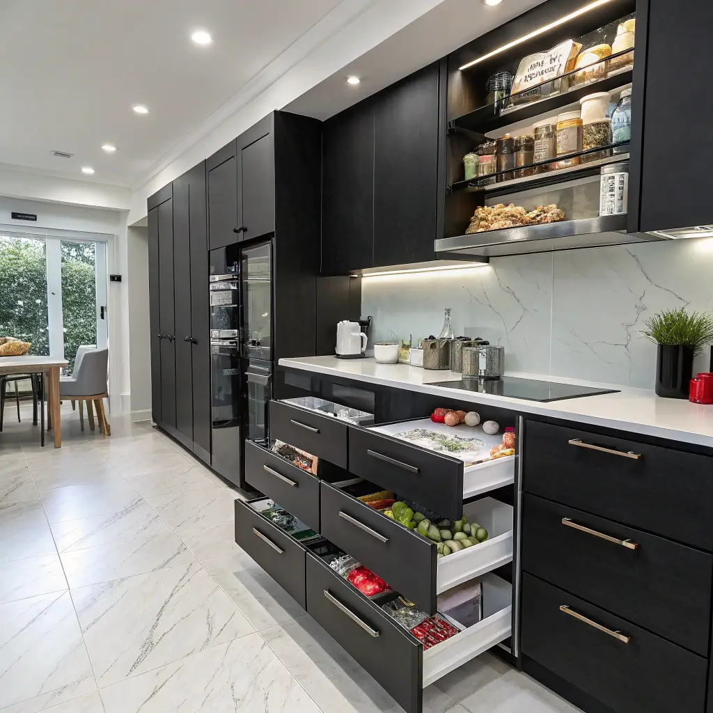 Black Kitchen Cabinets with Smart Storage Solutions