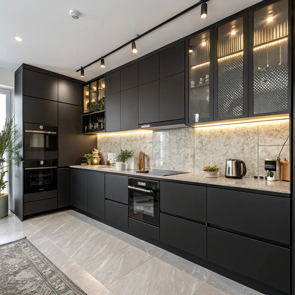 Monochrome Black Kitchen with Metallic Details