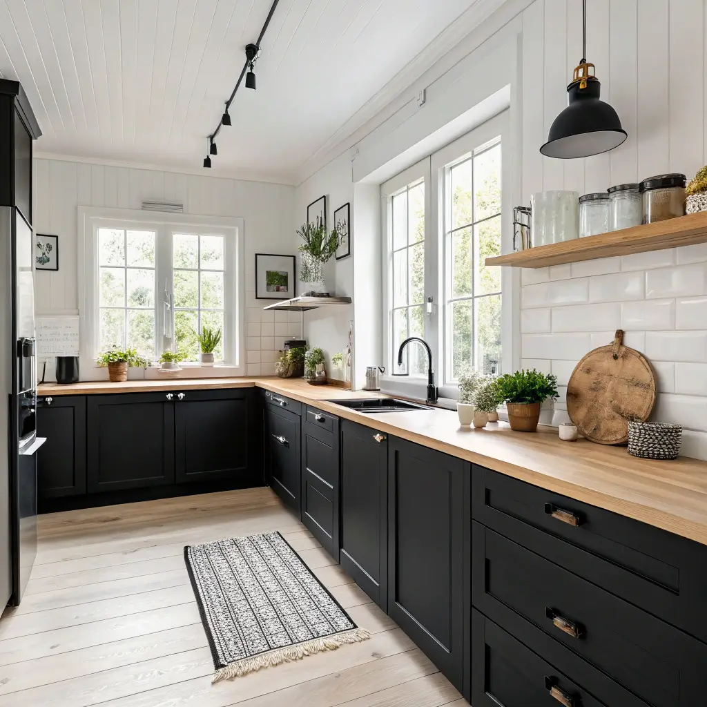 Scandinavian-Inspired Black Kitchen with Light Wood