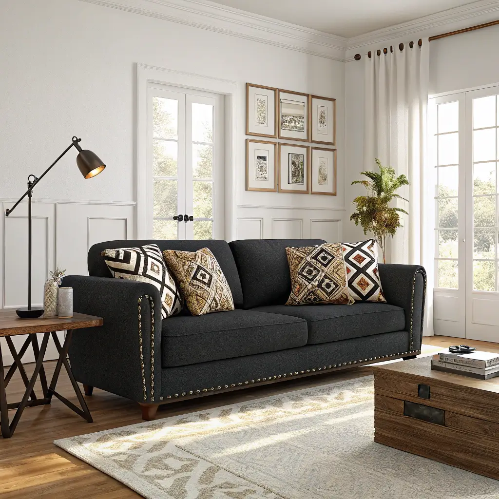 Whether you’re going for minimalist chic or maximalist chaos, your black sofa stands ready to support your design dreams. The best part? When you get bored (and you will), changing your entire room’s vibe is as simple as swapping out accessories.