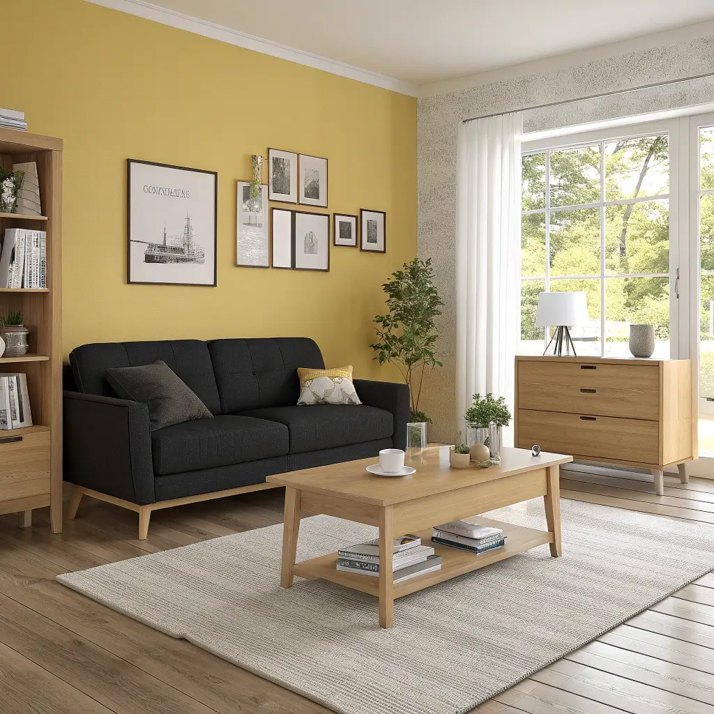 - A single bold accent wall behind the sofa
