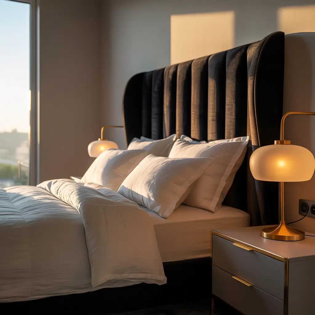Want to amplify the luxury factor? Add metallic gold wall sconces flanking your bed. They cast the most flattering light (goodbye, harsh overhead bulbs) and create this intimate, moody atmosphere that screams sophistication. Pro tip: dimmer switches transform these fixtures into mood-setting magic makers.