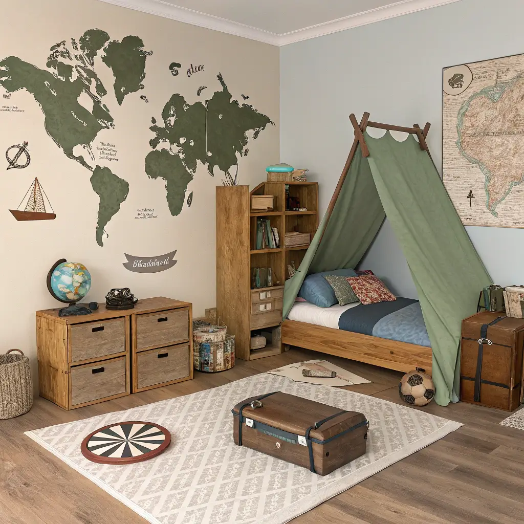 Start with maps as wallpaper or wall art. Vintage maps, treasure maps, world maps – they all work brilliantly. I once found an amazing peel-and-stick world map wallpaper that doubled as an educational tool. Win-win, right?