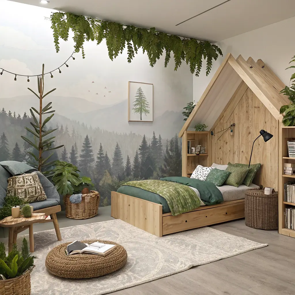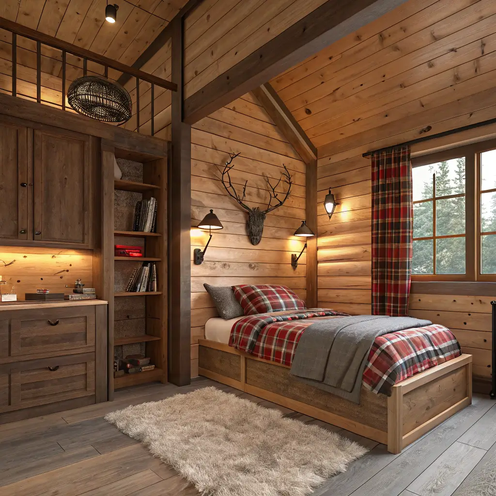 Want to bring the great outdoors inside? A rustic cabin theme creates a cozy retreat that feels like a permanent camping trip. And no, you don’t need actual logs to pull this off.