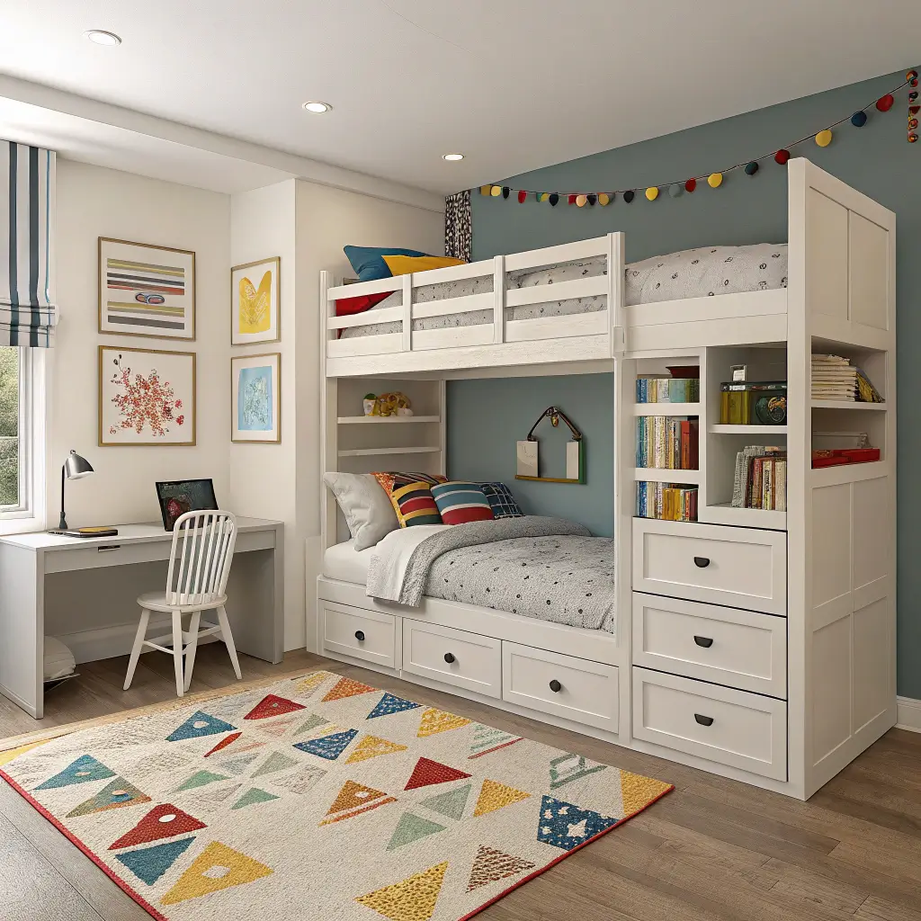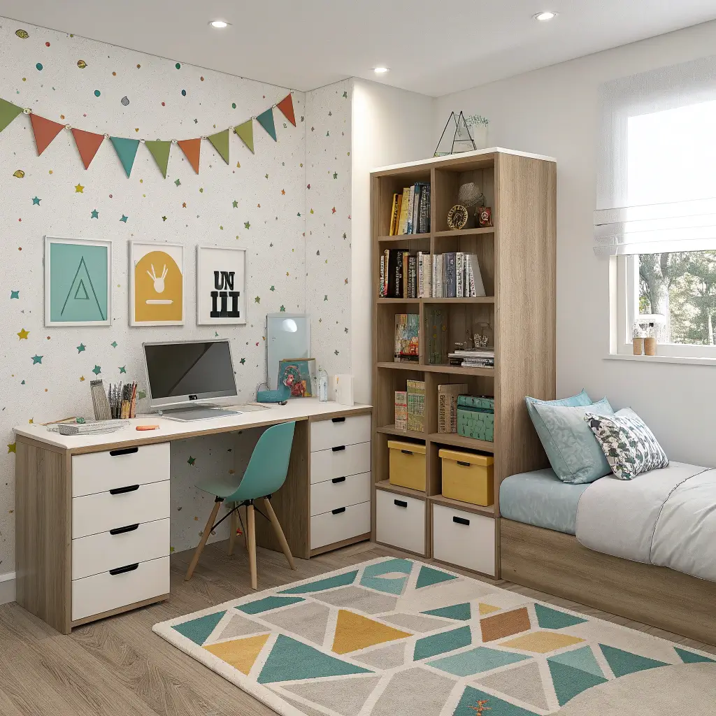 Zone creation is crucial here. Use rugs, lighting, or even paint to visually separate the study area from the play space. When my kids were younger, we had a “smart side” and “fun side” of the room, and somehow it actually helped them focus.