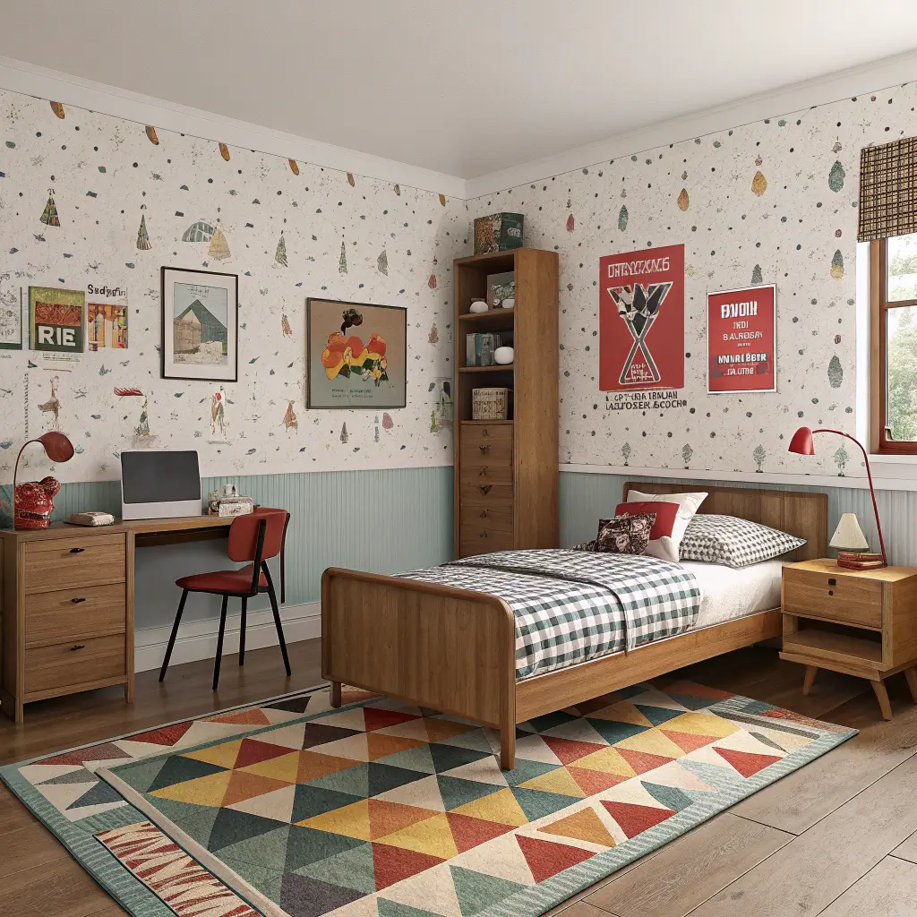 Pick a decade and run with it. My friend’s son has an 80s arcade-themed room complete with vintage game posters and neon signs. It looks like something from Stranger Things, and everyone who sees it wants one.