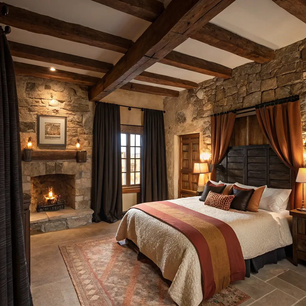 Rustic design celebrates natural materials, warm tones, and that cabin-in-the-woods feeling—even if your actual bedroom overlooks a parking lot. The curtains play a crucial role in establishing this atmosphere.