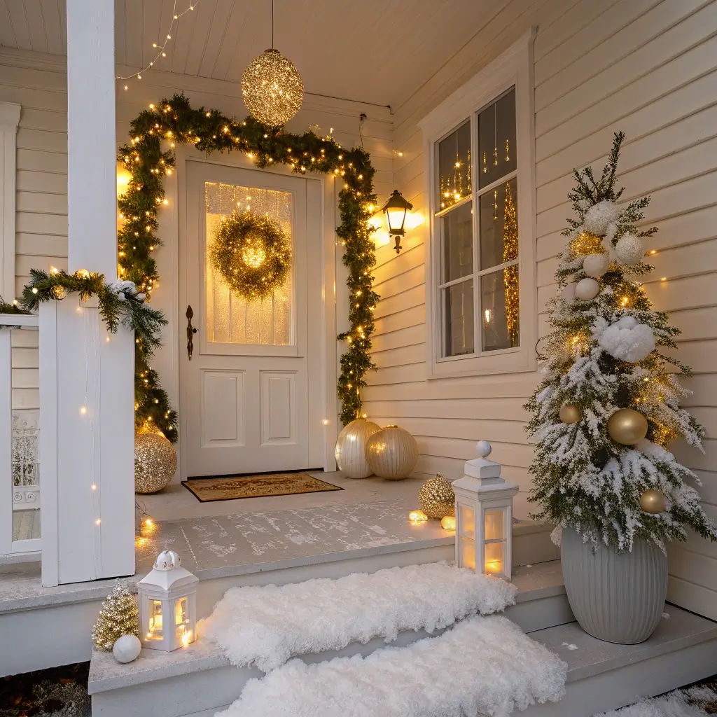 Elegant Gold & White Holiday Porch
