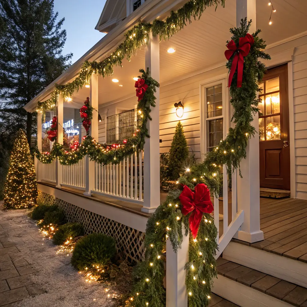 Add traditional elements sparingly—a red bow here, some gold accents there. The contrast between tropical and traditional creates that unique elegance that sets your porch apart from every other house on the block.