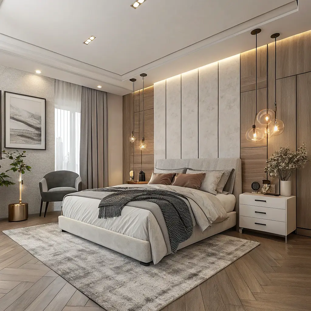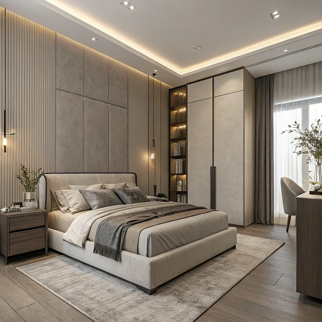 Let’s be real—most of us have too much stuff. A contemporary bedroom with integrated storage solves this problem while maintaining clean aesthetics. No more clothes chair. No more dresser avalanche.