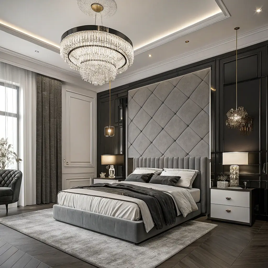 6. Luxury Contemporary Bedroom with Statement Lighting