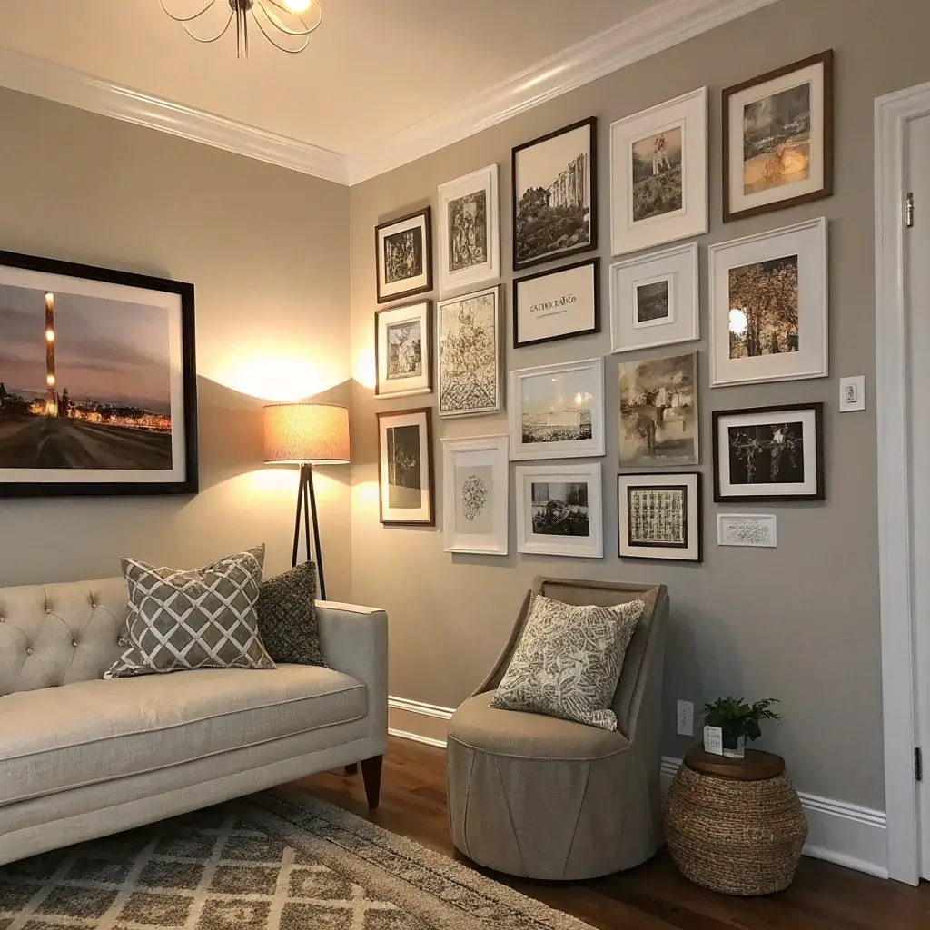 My corner gallery started with five frames and somehow evolved into 15 pieces including a vintage mirror, dried flowers in a shadow box, and a small wooden shelf holding a tiny sculpture. The trick is starting with your largest piece as an anchor, then building around it like you’re playing Tetris but with prettier pieces.