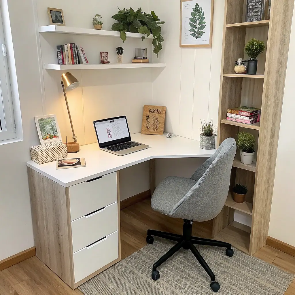 I converted my bedroom corner into a mini office last year, and let me tell you, the L-shaped setup changed everything. One side holds my laptop and main work stuff, the other side is for notebooks, coffee, and the succulent I talk to during Zoom calls.