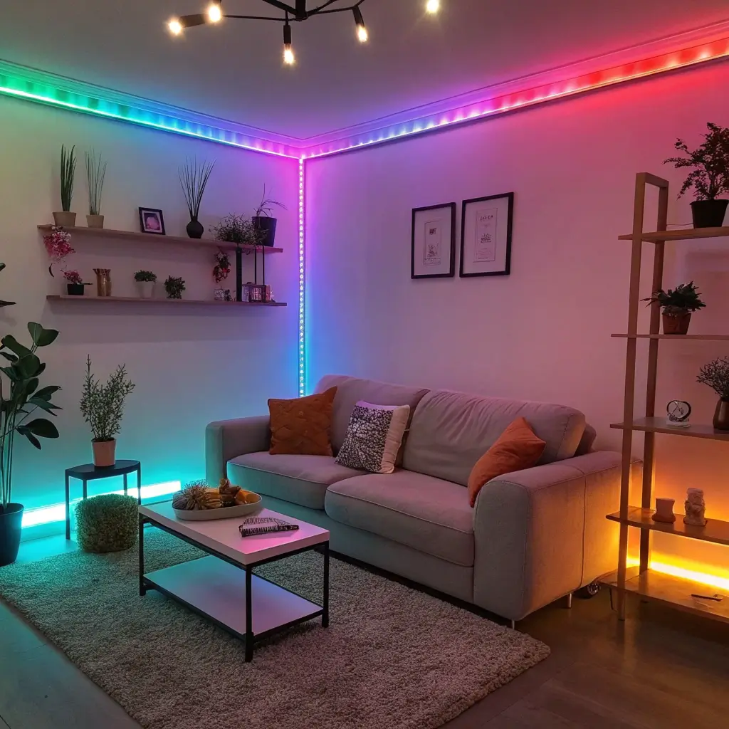 LED strips in corners create this ethereal glow that makes everything look expensive. It’s like architectural highlighting but for regular people who don’t have architectural features worth highlighting.
