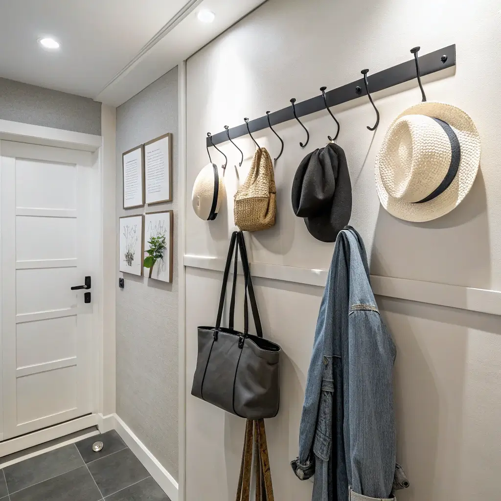 I’ve got matte black hooks arranged asymmetrically in my entryway corner. They hold bags, scarves, and dog leashes, but when empty, they look like modern art. The trick is choosing hooks that look good naked (the hooks, not you).