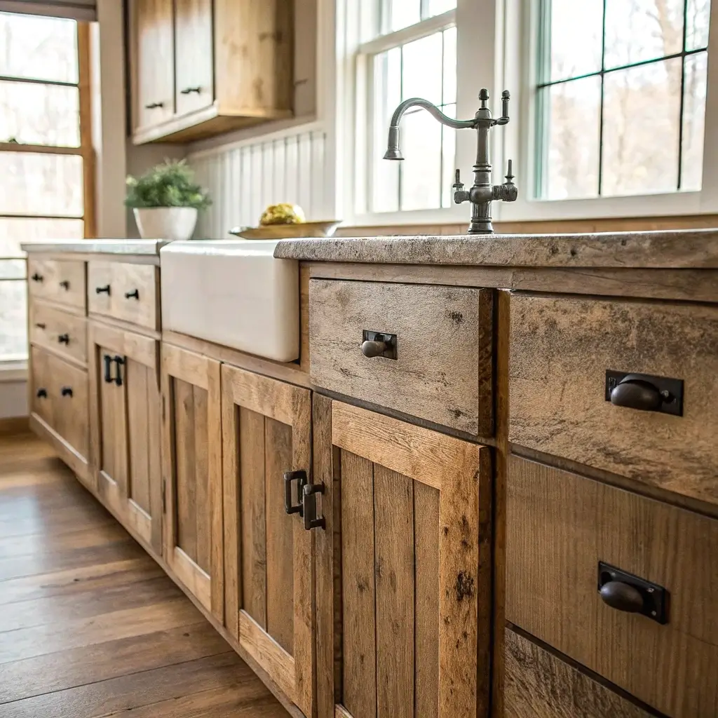 Natural wood grain tells a story. Whether you go for reclaimed barn wood (my personal favorite) or new cabinets with a distressed finish, the texture adds instant authenticity. I’ve seen stunning kitchens with knotty pine, weathered oak, and even rough-sawn cedar cabinets that make my heart skip a beat.