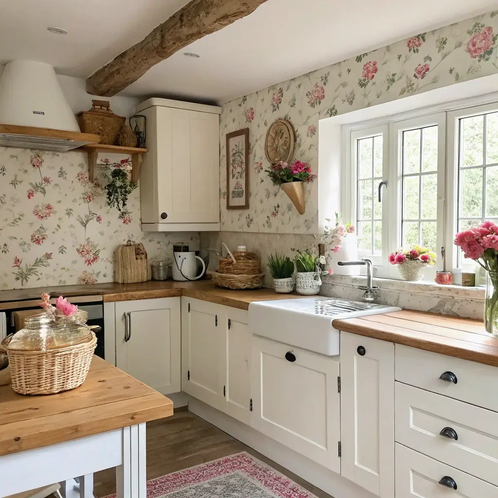 Florals in the kitchen might sound like a bold move, but hear me out—done right, they’re absolutely stunning and perfectly on-brand for cottage style. We’re not talking about your grandmother’s dated wallpaper (though honestly, some of those patterns are coming back in style).