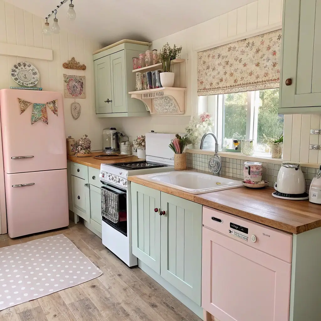Color placement matters too. Consider painting your island a different pastel than your perimeter cabinets, or try a bold pastel on your ceiling (yes, really) for an unexpected twist. And don’t sleep on pastel appliances—retro-style refrigerators in mint green or pale pink are having a serious moment right now.