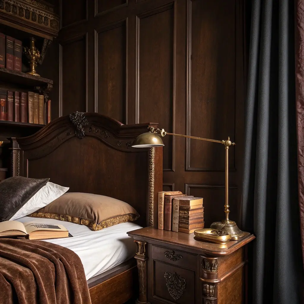 For my bookworms, intellectuals, and anyone who’s ever fantasized about living in an old English library—this one’s your dream come true. Dark academia bedrooms combine scholarly elegance with cozy comfort.