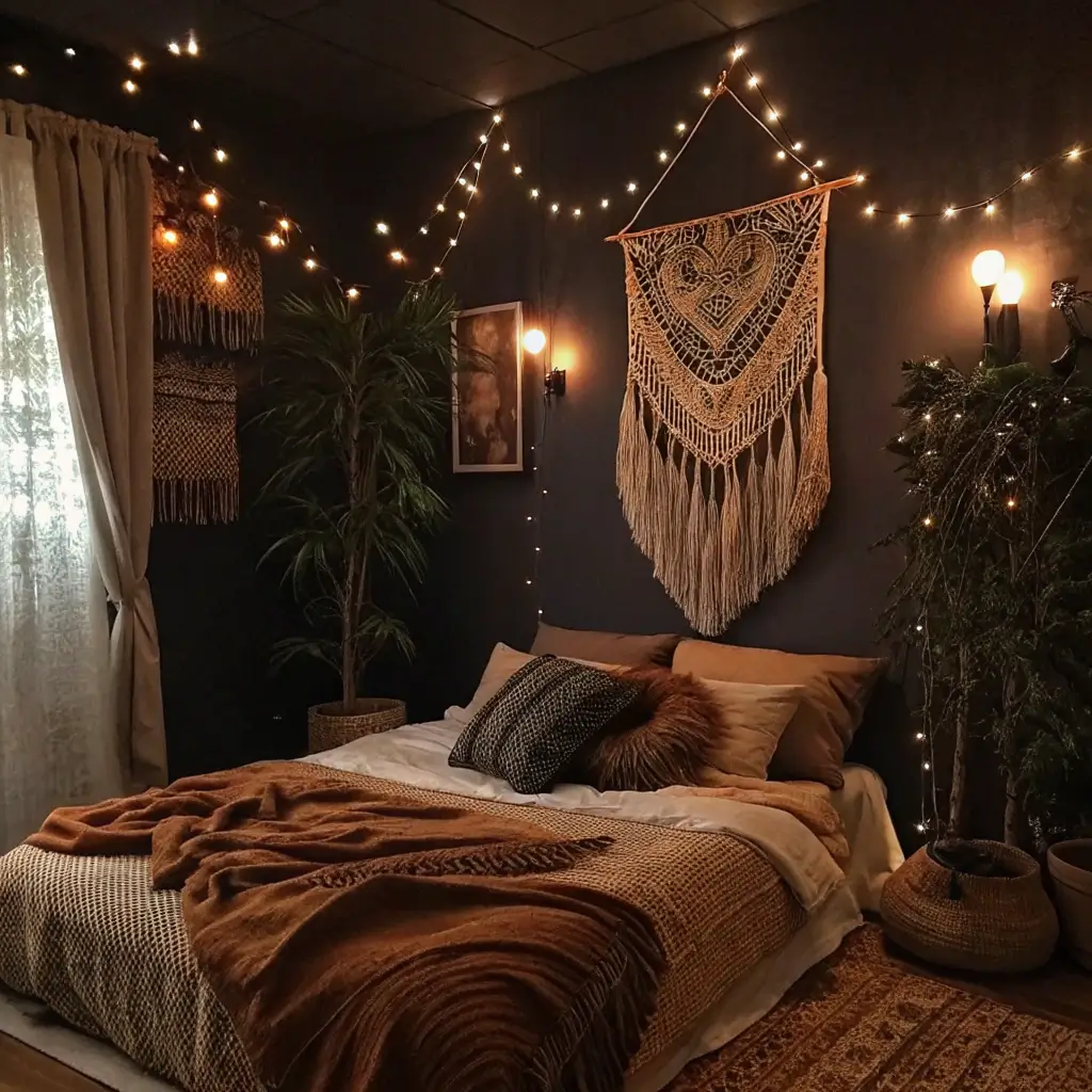 Can’t decide between moody vibes and bohemian freedom? Why not both? A twilight boho bedroom merges dark, atmospheric colors with eclectic boho textures for something truly unique.