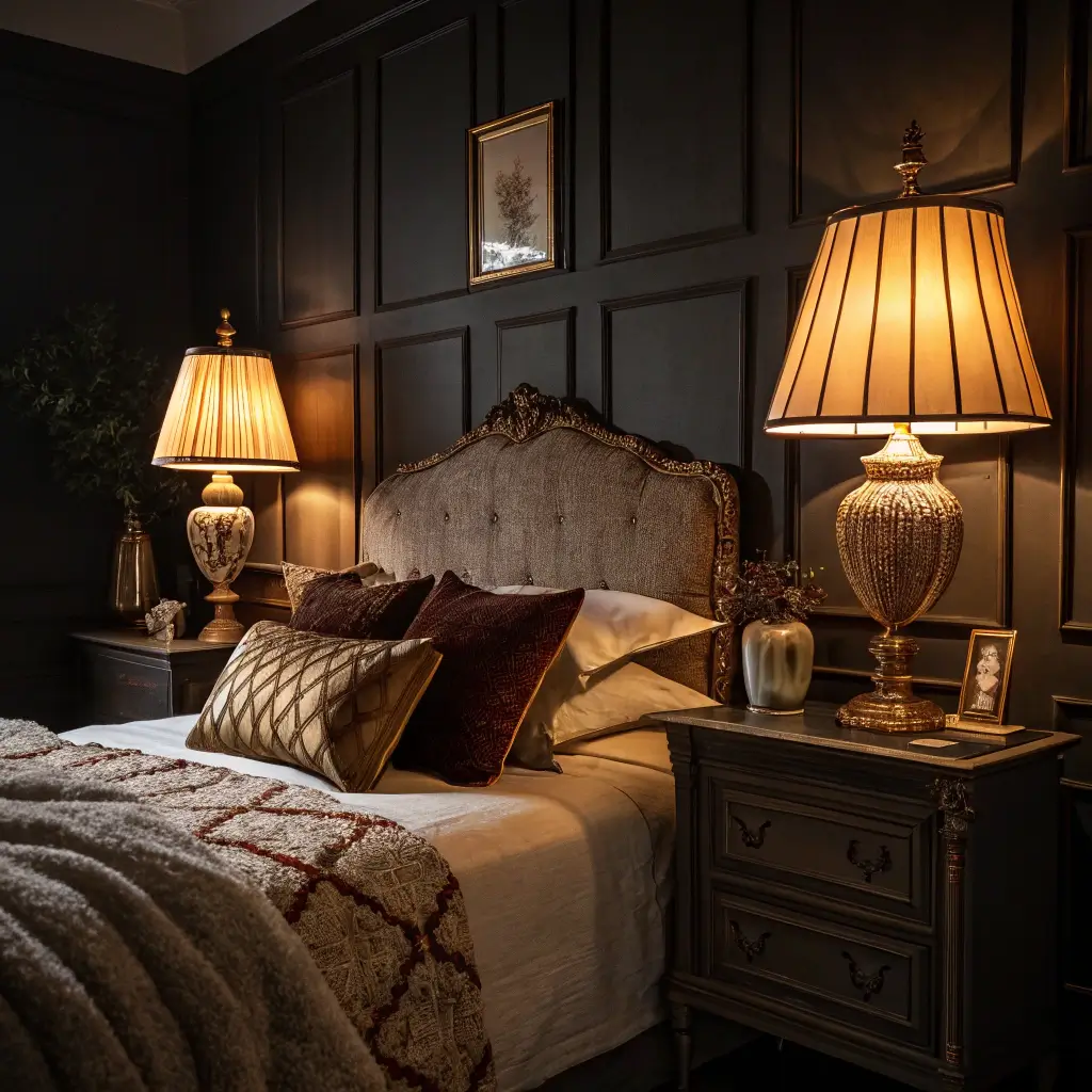 Use multiple light sources at different heights. A floor lamp in one corner, table lamps on nightstands, and maybe some LED strip lights behind the headboard. This creates pockets of warmth throughout the space and prevents that “cave of doom” feeling that can happen with dark rooms.