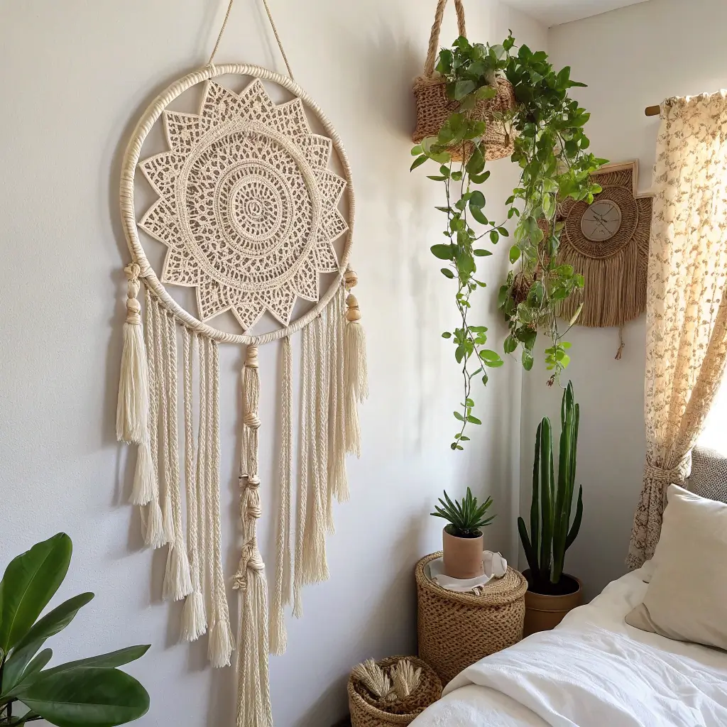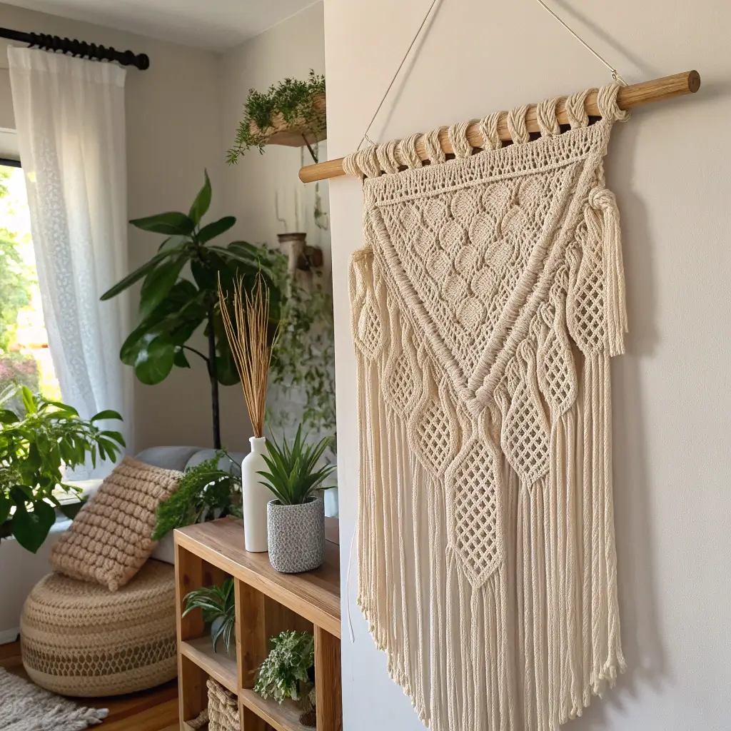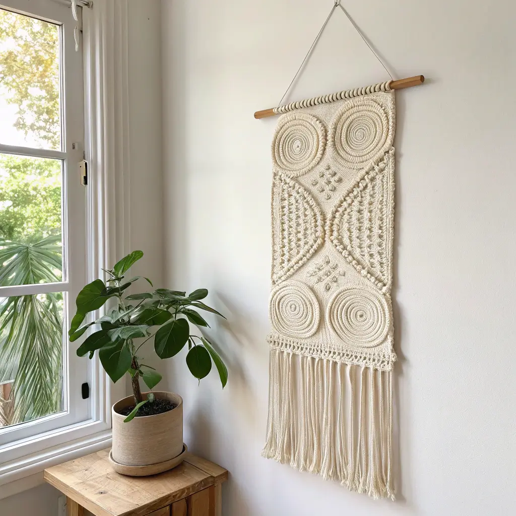 Remember when macrame had its moment a few years back? Well, crochet decided to crash that party, and honestly, it brought better snacks. Macrame-inspired crochet wall hangings combine the best of both worlds – you get that boho, textured look without having to learn a completely new craft.