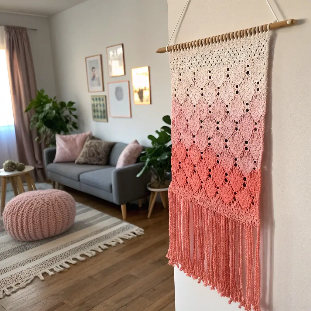 Gradient yarn has entered the chat, and honestly, it’s doing all the heavy lifting for us. Ombre wall pieces create that Pinterest-worthy look without requiring a degree in color theory.