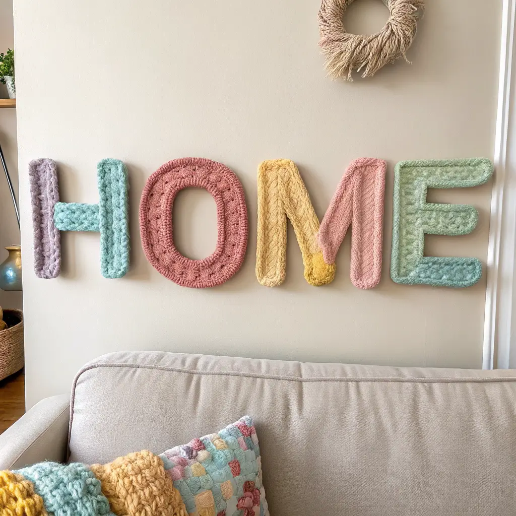 Want to personalize a space without committing to permanent changes? Crochet letters are your answer. They’re perfect for kids’ rooms, but honestly, I’ve seen them work beautifully in adult spaces too.