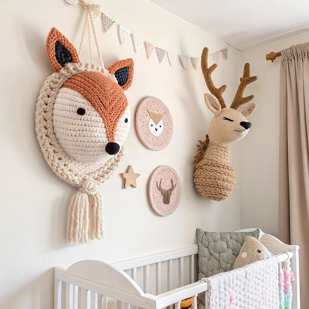 Okay, this is where things get fun (and slightly weird, but in the best way). 3D crochet animal heads give you that trendy taxidermy look without any of the ethical concerns. Your walls get personality, and no animals were harmed in the making of your decor. Win-win!