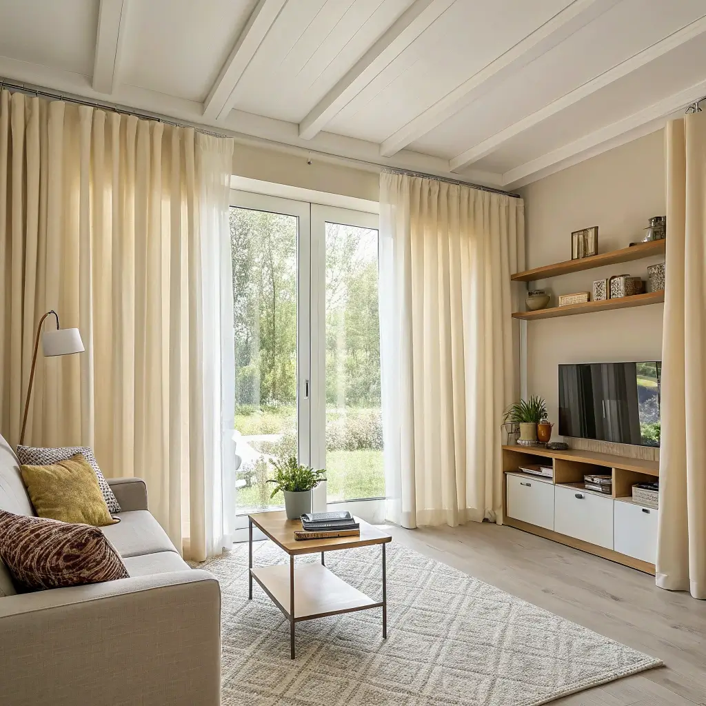 Sometimes you just want your living room to feel like a warm hug, right? Neutral curtains create that cozy, lived-in vibe without trying too hard.