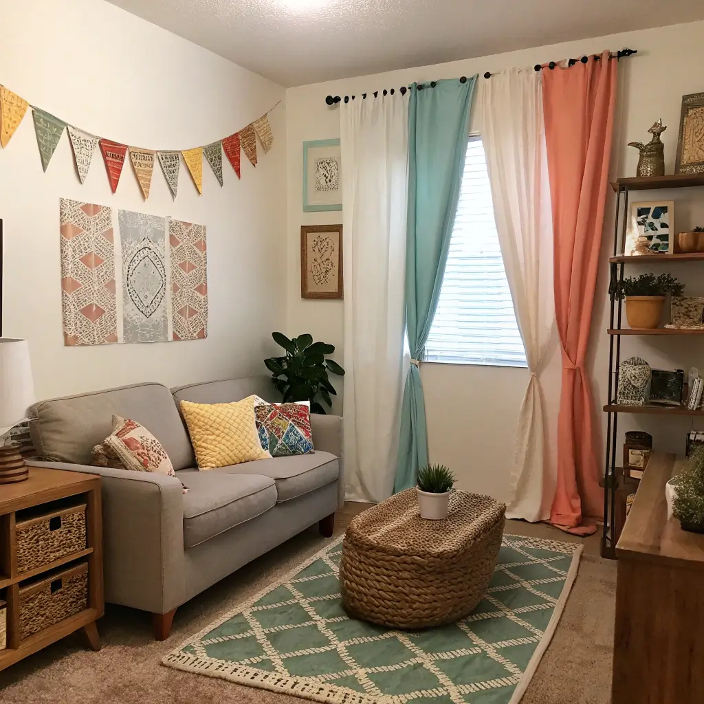 Think macramé details, tassels, and earthy tones that make you feel like you’ve wandered into a desert retreat. I once hung these gorgeous burnt orange panels with embroidered edges, and suddenly my boring beige room had personality for days.