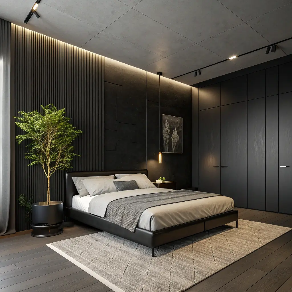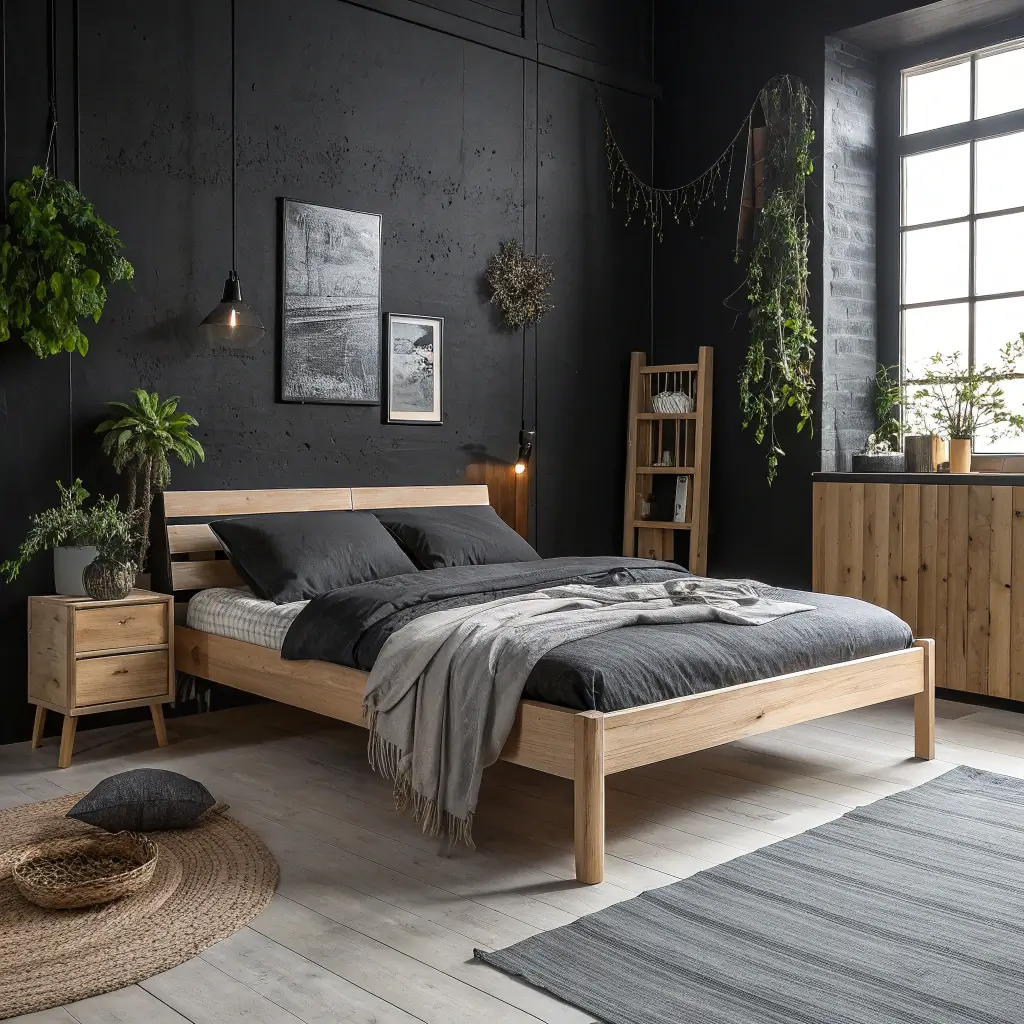 IMO, this aesthetic works particularly well in bedrooms that receive strong natural light during the day. The contrast between dark surfaces and streaming sunlight creates absolutely magical moments.