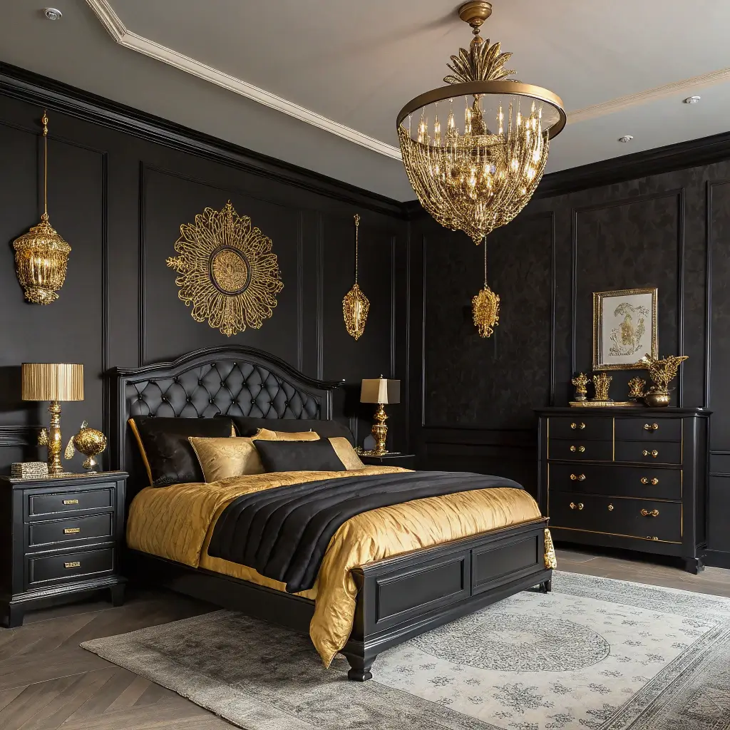 Okay, if you want to feel like absolute royalty every single night, this is your aesthetic. Black and gold together create one of the most timelessly elegant combinations in interior design—and honestly, it never gets old.