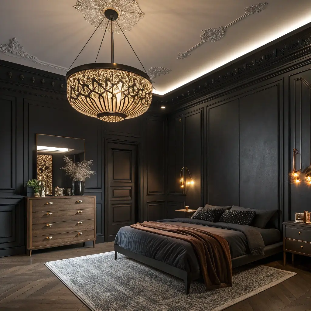 I recently saw a bedroom with matte black walls and a massive brass sputnik chandelier, and honestly, I thought about it for days afterward. The combination was unforgettable.