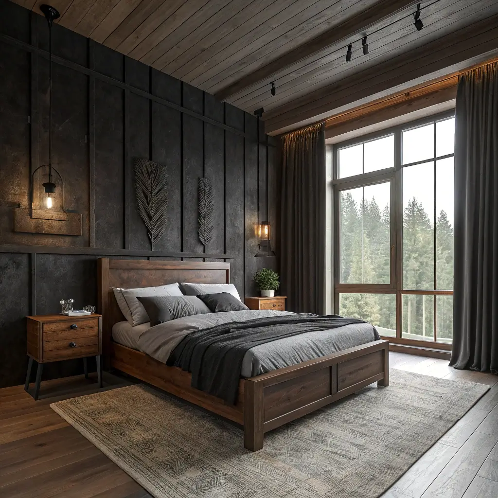 This aesthetic relies heavily on contrast. Your walls might be deep charcoal or black, but wooden elements bring life, texture, and warmth that prevent the space from feeling cold or sterile.