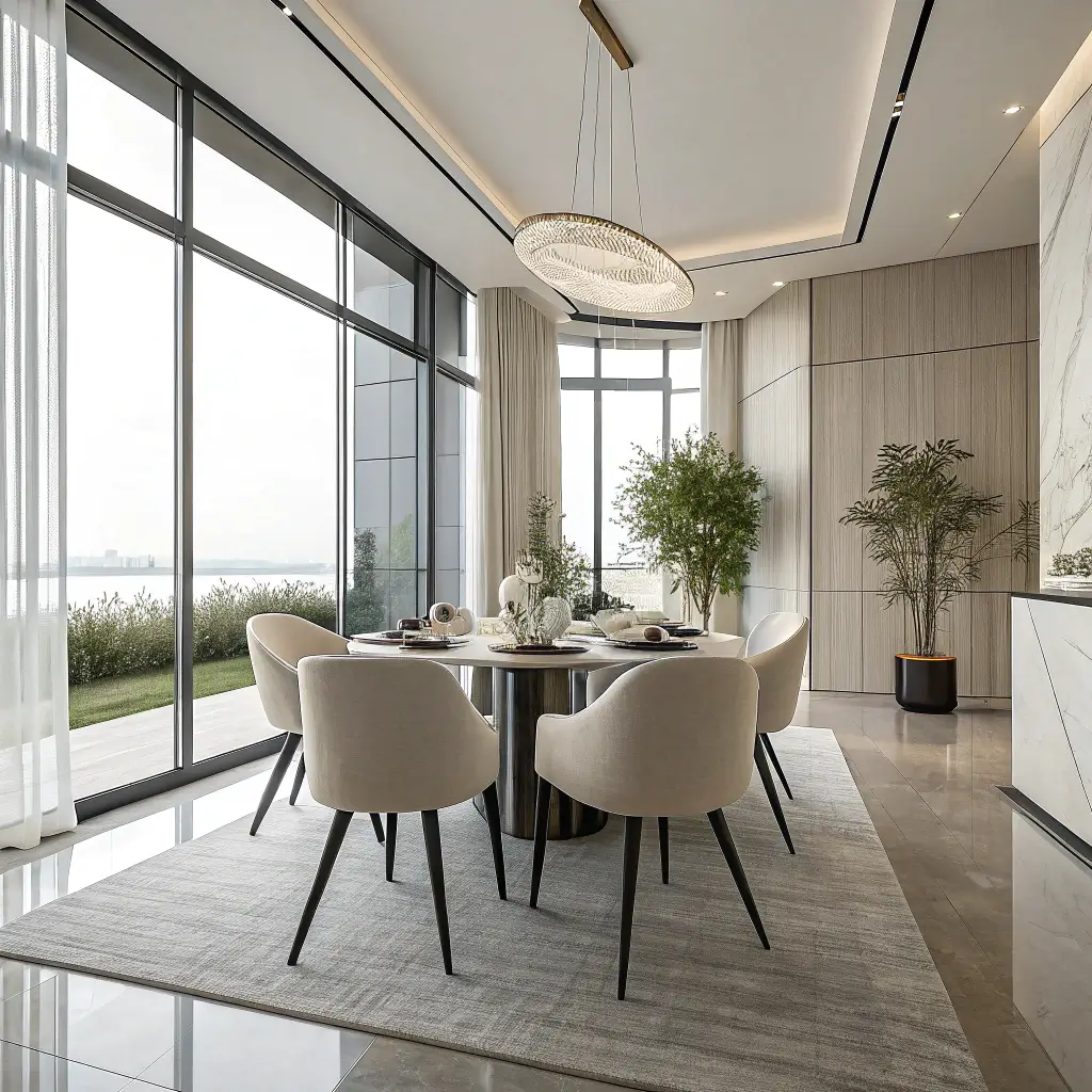 Clean lines and neutral colors form the backbone of modern minimalist dining rooms. Think white walls, maybe some soft grays, and furniture that looks like it could double as modern art. You want pieces that whisper sophistication rather than scream for attention.